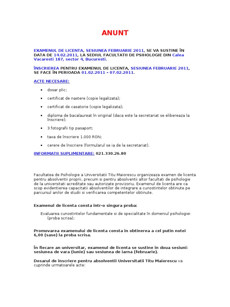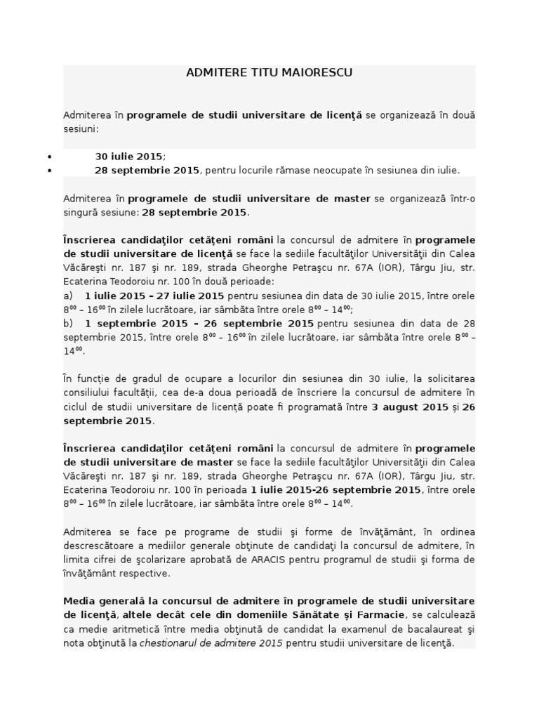 Acte Necesare Inscriere Facultate Titu Maiorescu