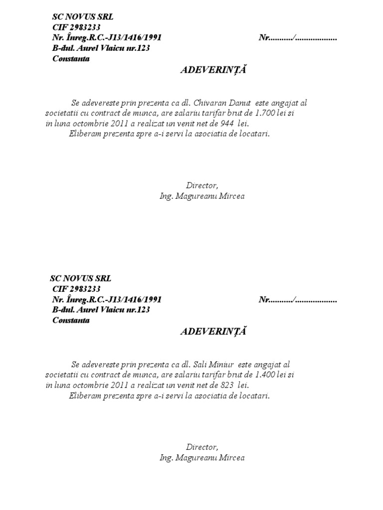 Adeverinta Asociaţia De Locatari Cu Fond Rulment