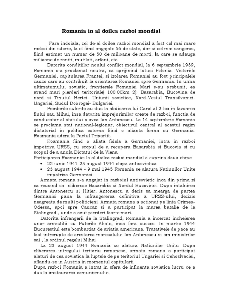 Referat Romania In Al Doilea Razboi Mondial Istoria Romanilor 24815