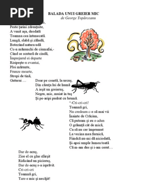 Tema La Limba Romana Balada Unui Greier Mic De George Toparceanu