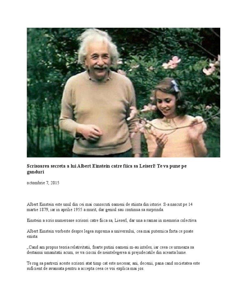 Scrisoarea Secreta A Lui Albert Einstein Catre Fiica Sa Leiserl