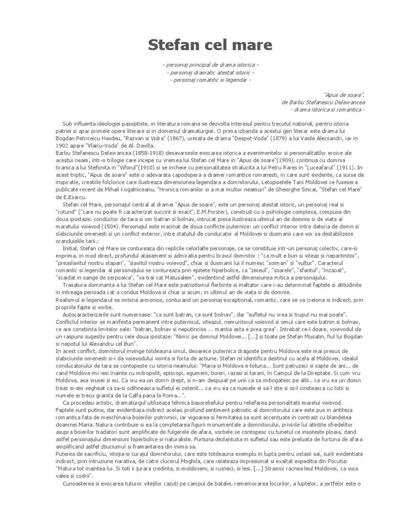 Apus De Soare Caracterizare Stefan Cel Mare