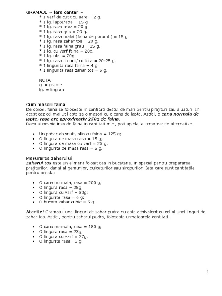 Masurarea Ingredientelor In Bucatarie Fara Cantar Tabele Masuratori Practice