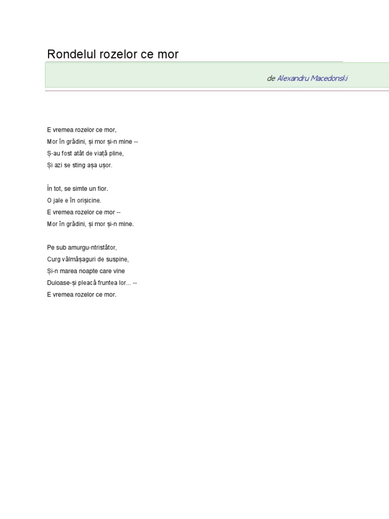 Rondelul Rozelor Ce Mor Poezii