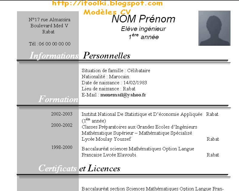 Resume Format Curriculum Vitae Exemple Gratuit Maroc
