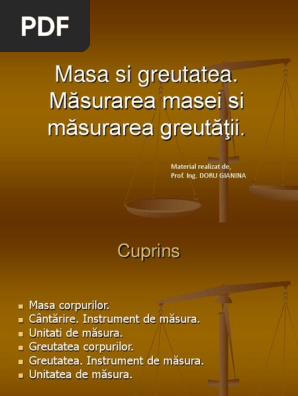 Greutatea unitate de masura. Oz av uncii avoirdupois. Este definită ca fiind 1 12 din masa izotopului carbon 12 și are valoarea. Système international d unités indiferent de cum se numește sistemul într o anumită limbă. Relaţia dintre masa m şi greutatea g a unui corp este.