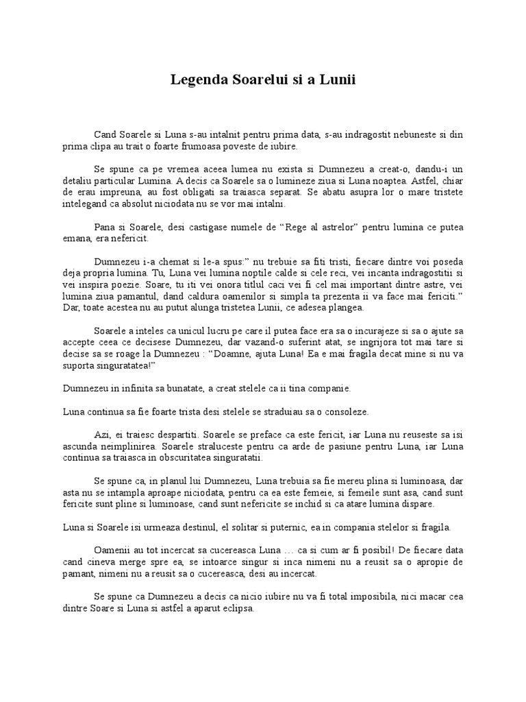 Legenda Soarelui Si A Lunii Din Suflet Drag