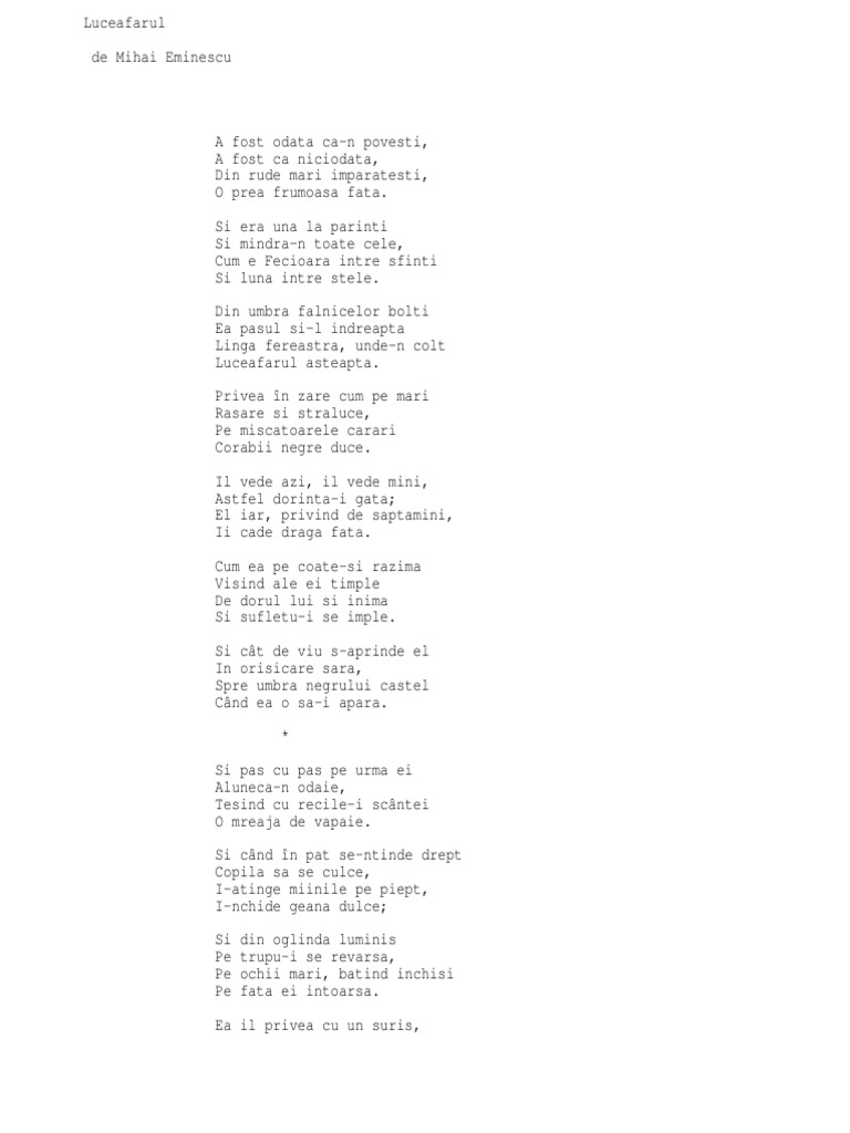 Comentarii Bacalaureat Luceafărul De Mihai Eminescu Wattpad