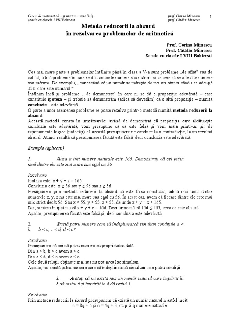 Pdf Demonstraţia Prin Metoda Reducerii La Absurd Adrian Goia Academia Edu