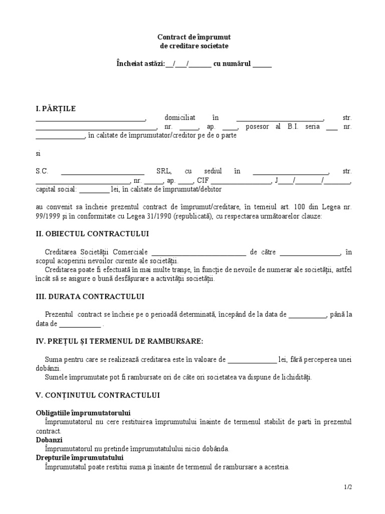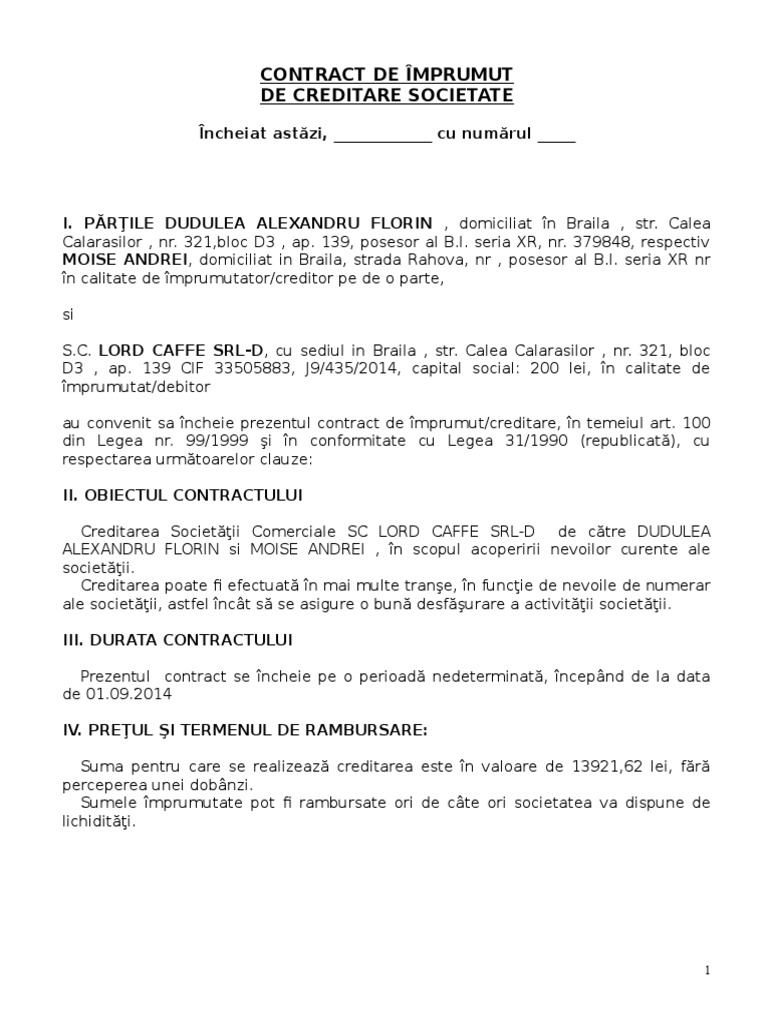 Contract De Imprumut Firmă Creditare Societate Model Theexperts Ro