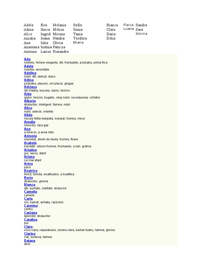 Nume Romanesti De Fete Nume De Copii
