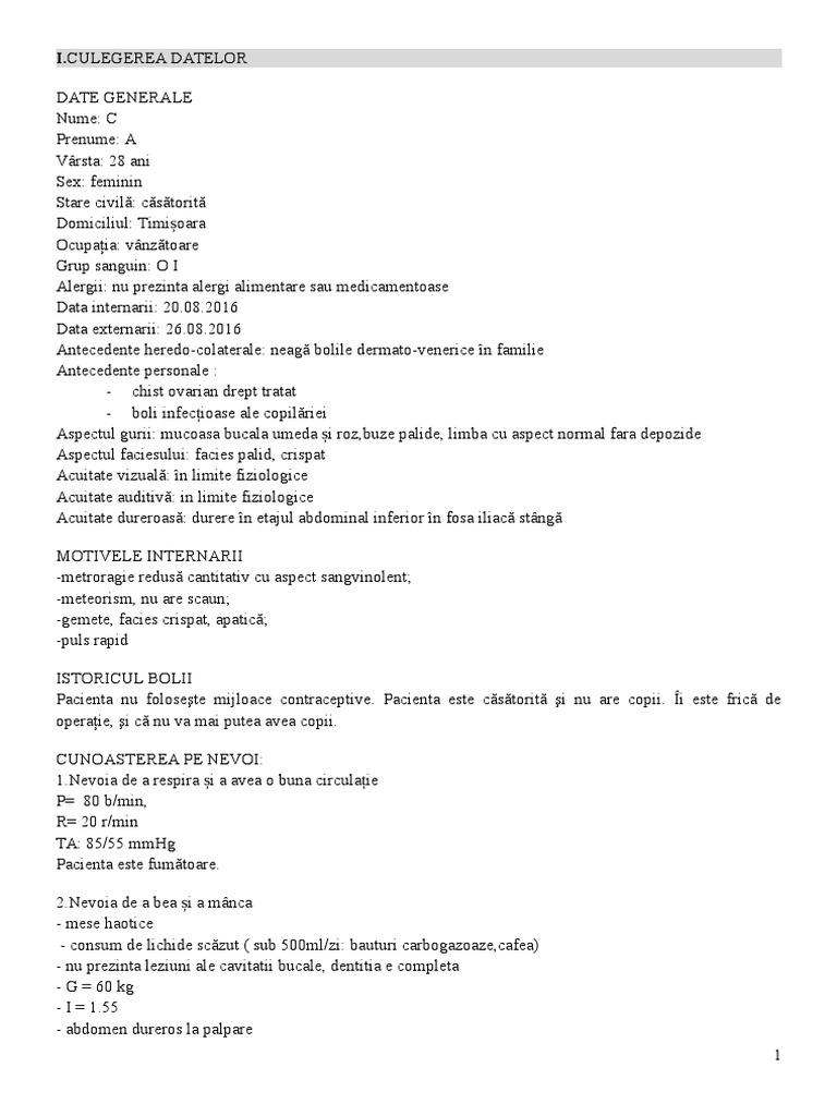 Plan De Ingrijire Ginecologie Dobre Semi An Iii