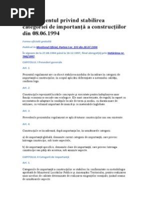 Regulamentul Privind Stabilirea Categoriei De Importanţă A Construcţiilor Din 08