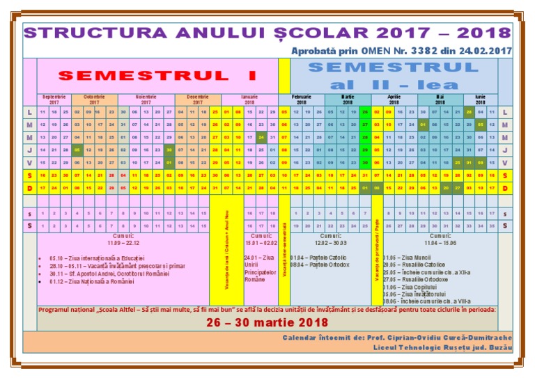 Structura Anului Scolar 2017 18