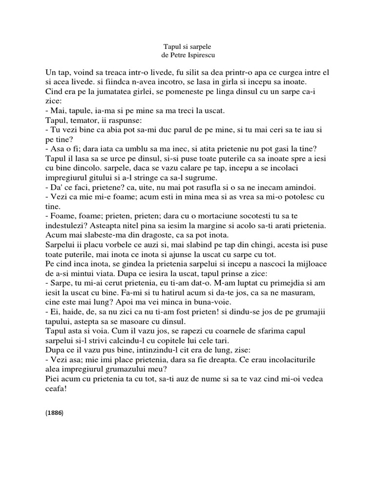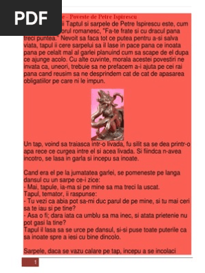 Tapul Si Sarpele Poveste De Petre Ispirescu Printat