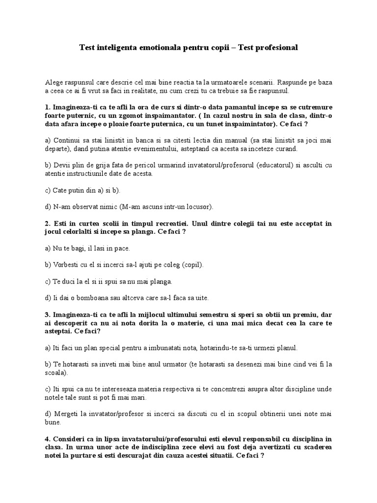 Test Inteligenta Emotionala Pentru Copii Test Profesional Alina Blagoi