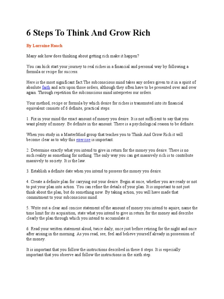 6 Steps To Think And Grow Rich