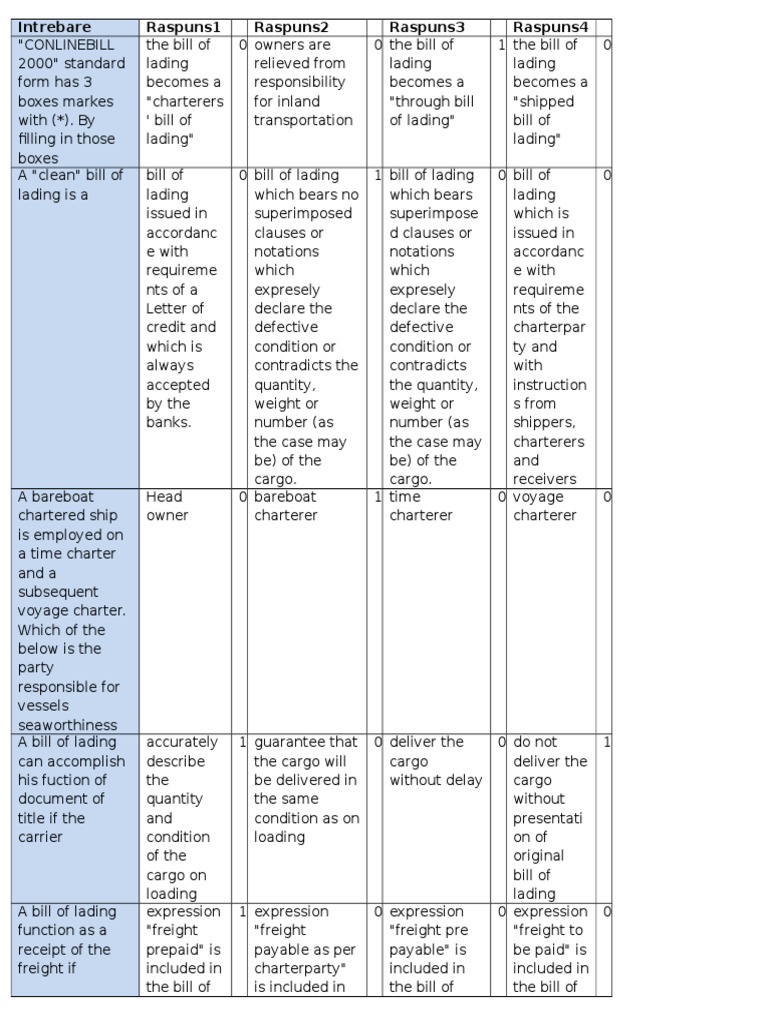 Otn Bill Of Lading Cargo